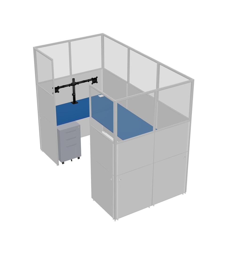 Système De Panneau En U Prism Blue Pour 1 Personne + Bras D'écran (bras Doubles) + Tiroirs Mobiles En Métal Pour 1 Utilisateur(s)