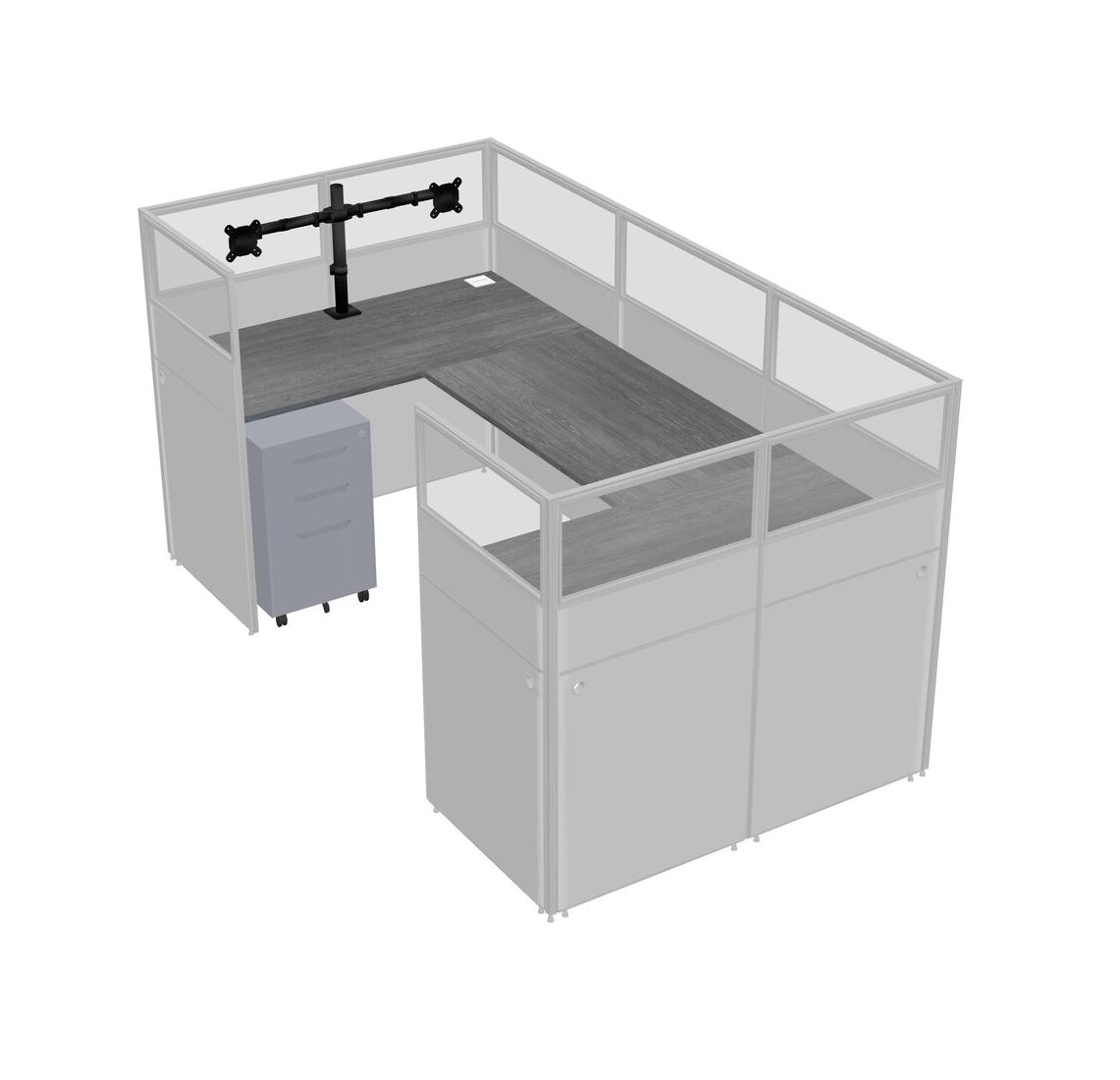 Système De Panneaux En U Gris Pour 1 Personne + Bras D'écran (bras Doubles) + Tiroirs Mobiles En Métal Pour 1 Utilisateur(s)