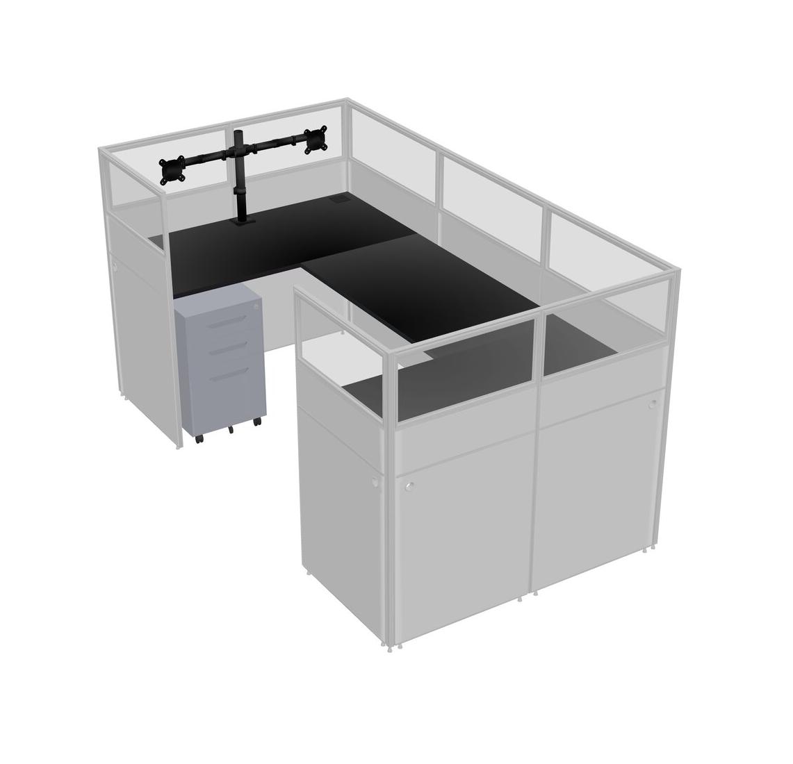 Système De Panneaux En U Noir Pour 1 Personne + Bras D'écran (bras Doubles) + Tiroirs Mobiles En Métal Pour 1 Utilisateur(s)