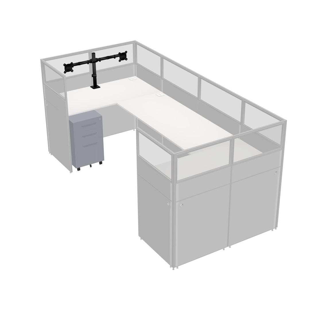 Système De Panneaux Blancs En U Pour 1 Personne + Bras D'écran (bras Doubles) + Tiroirs Mobiles En Métal Pour 1 Utilisateur(s)
