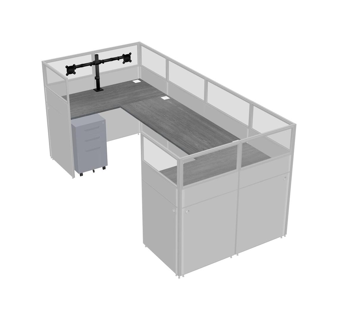 Système De Panneaux En U Gris Pour 1 Personne + Bras D'écran (bras Doubles) + Tiroirs Mobiles En Métal Pour 1 Utilisateur(s)
