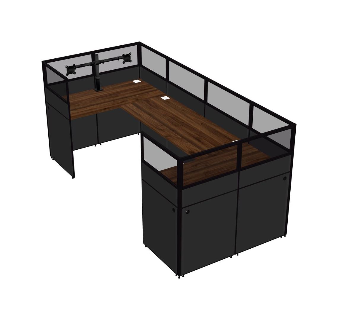 Système De Panneaux En U En Noyer Columbia Pour 1 Personne + Bras De Moniteur (bras Doubles) Pour 1 Utilisateur(s)