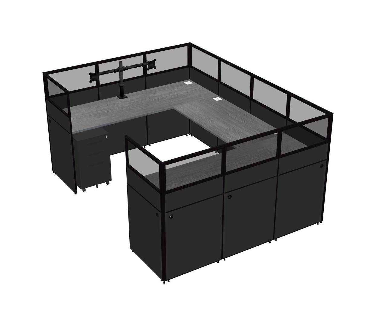Système De Panneaux En U Gris Pour 1 Personne + Bras D'écran (bras Doubles) + Tiroirs Mobiles En Métal Pour 1 Utilisateur(s)