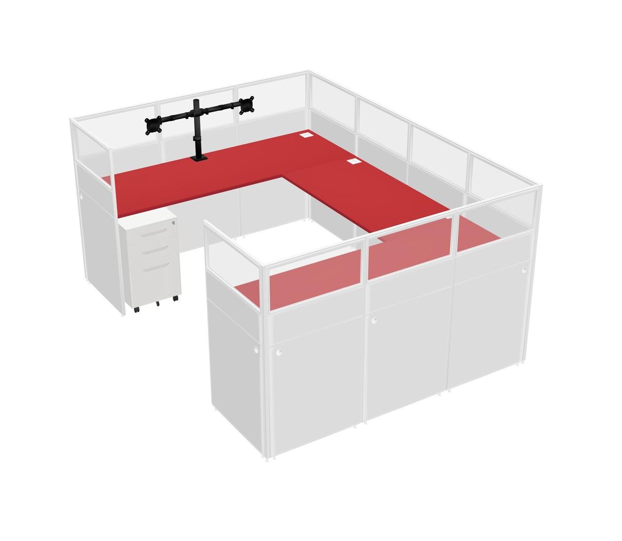 Système De Panneau En U Prism Red Pour 1 Personne + Bras D'écran (bras Doubles) + Tiroirs Mobiles En Métal Pour 1 Utilisateur(s)