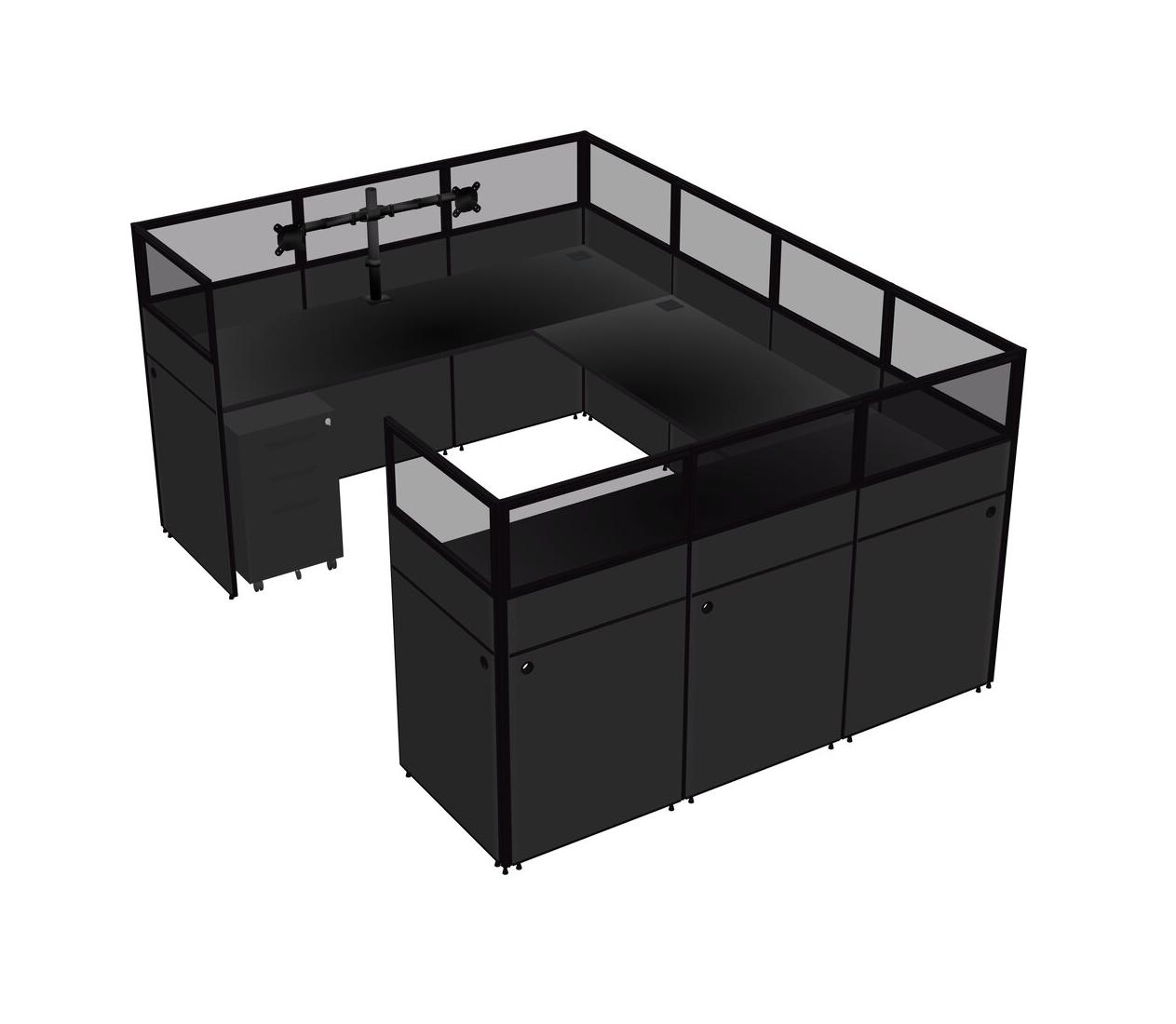 Système De Panneaux En U Noir Pour 1 Personne + Bras D'écran (bras Doubles) + Tiroirs Mobiles En Métal Pour 1 Utilisateur(s)