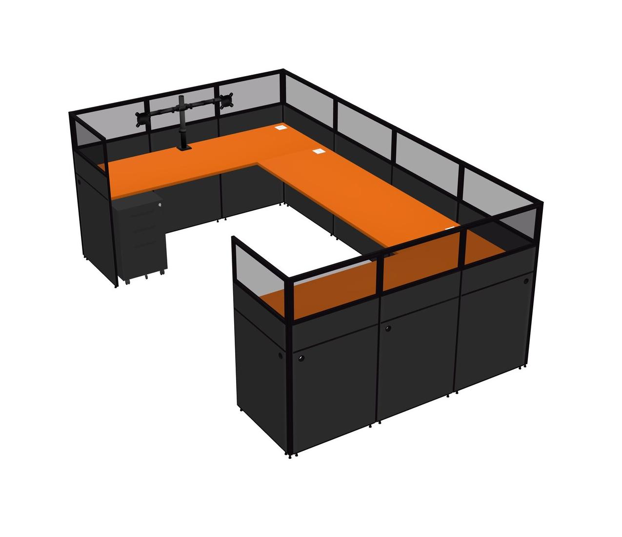Système De Panneau En U Orange Pour 1 Personne + Bras D'écran (bras Doubles) + Tiroirs Mobiles En Métal Pour 1 Utilisateur(s)