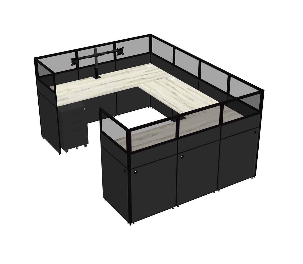 Système De Panneaux En U Heinne Holz Pour 1 Personne + Bras D'écran (bras Doubles) + Tiroirs Mobiles En Métal Pour 1 Utilisateur(s)