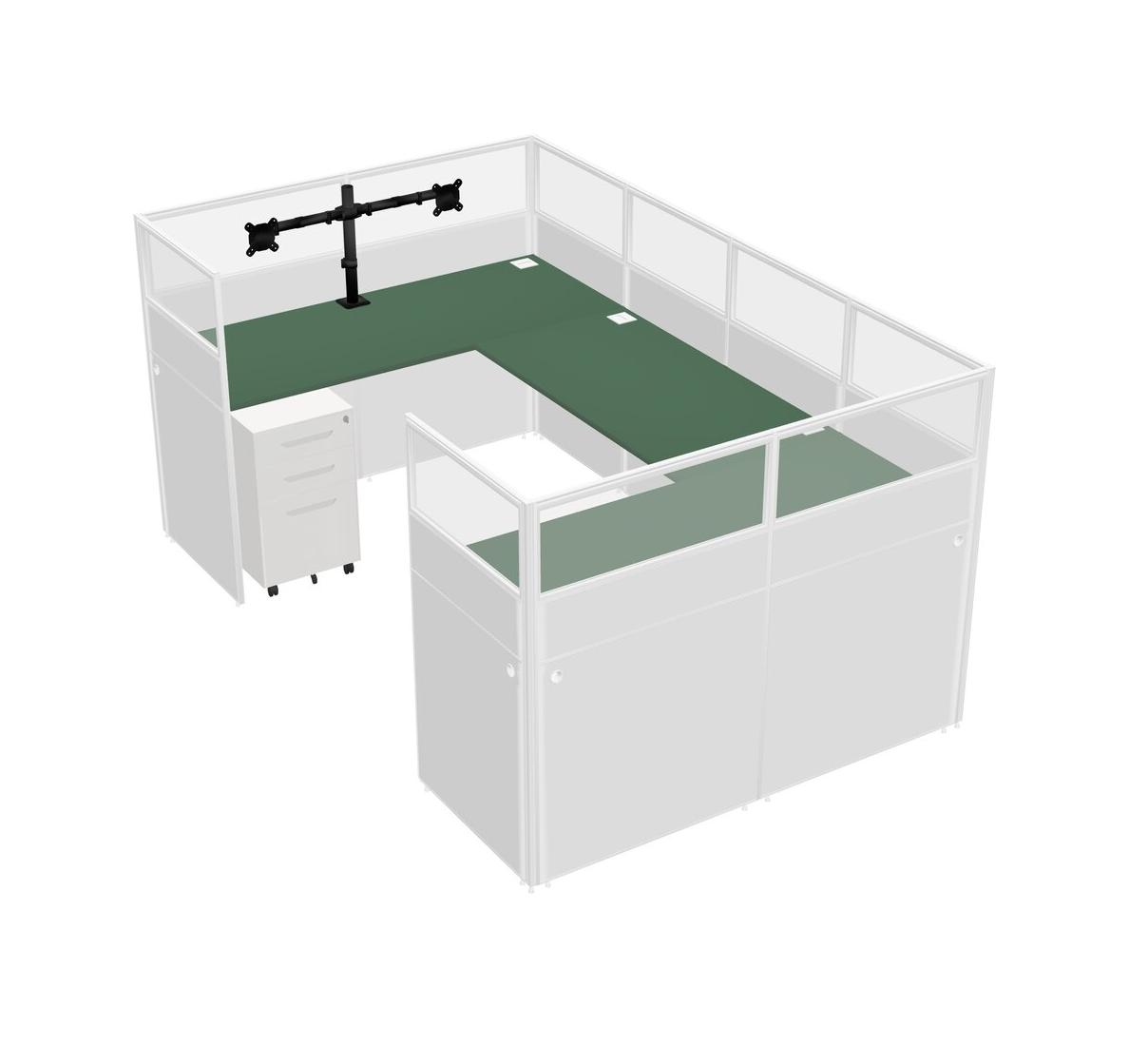 Système De Panneaux Verts En U Pour 1 Personne + Bras D'écran (bras Doubles) + Tiroirs Mobiles En Métal Pour 1 Utilisateur(s)