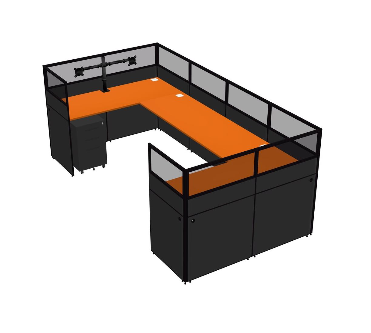 Système De Panneau En U Orange Pour 1 Personne + Bras D'écran (bras Doubles) + Tiroirs Mobiles En Métal Pour 1 Utilisateur(s)