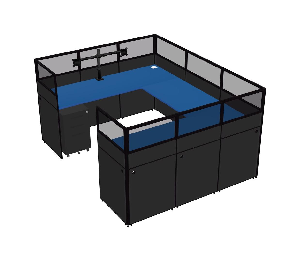 Système De Panneau En U Prism Blue Pour 1 Personne + Bras D'écran (bras Doubles) + Tiroirs Mobiles En Métal Pour 1 Utilisateur(s)
