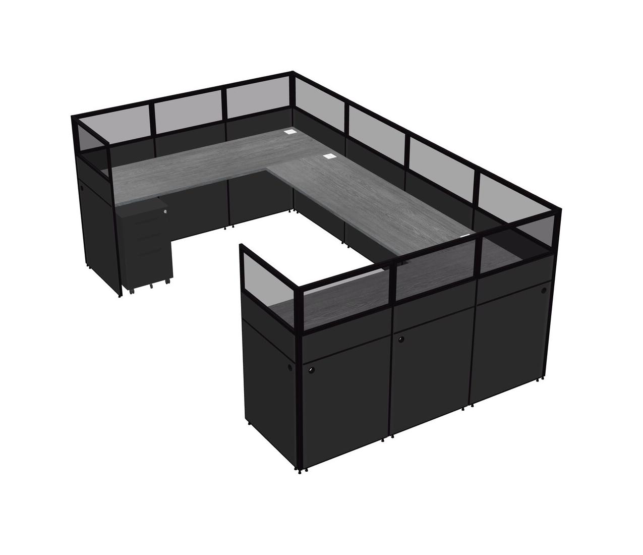 Système De Panneaux En U Gris Pour 1 Personne + Tiroirs Mobiles En Métal Pour 1 Utilisateur(s)