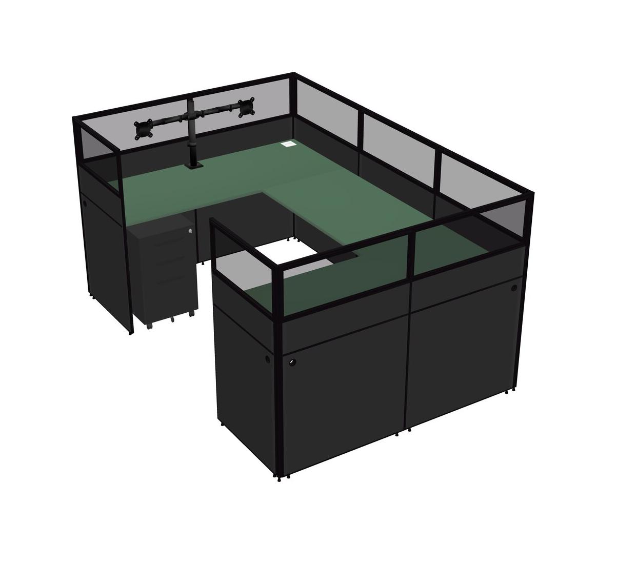 Système De Panneaux Verts En U Pour 1 Personne + Bras D'écran (bras Doubles) + Tiroirs Mobiles En Métal Pour 1 Utilisateur(s)