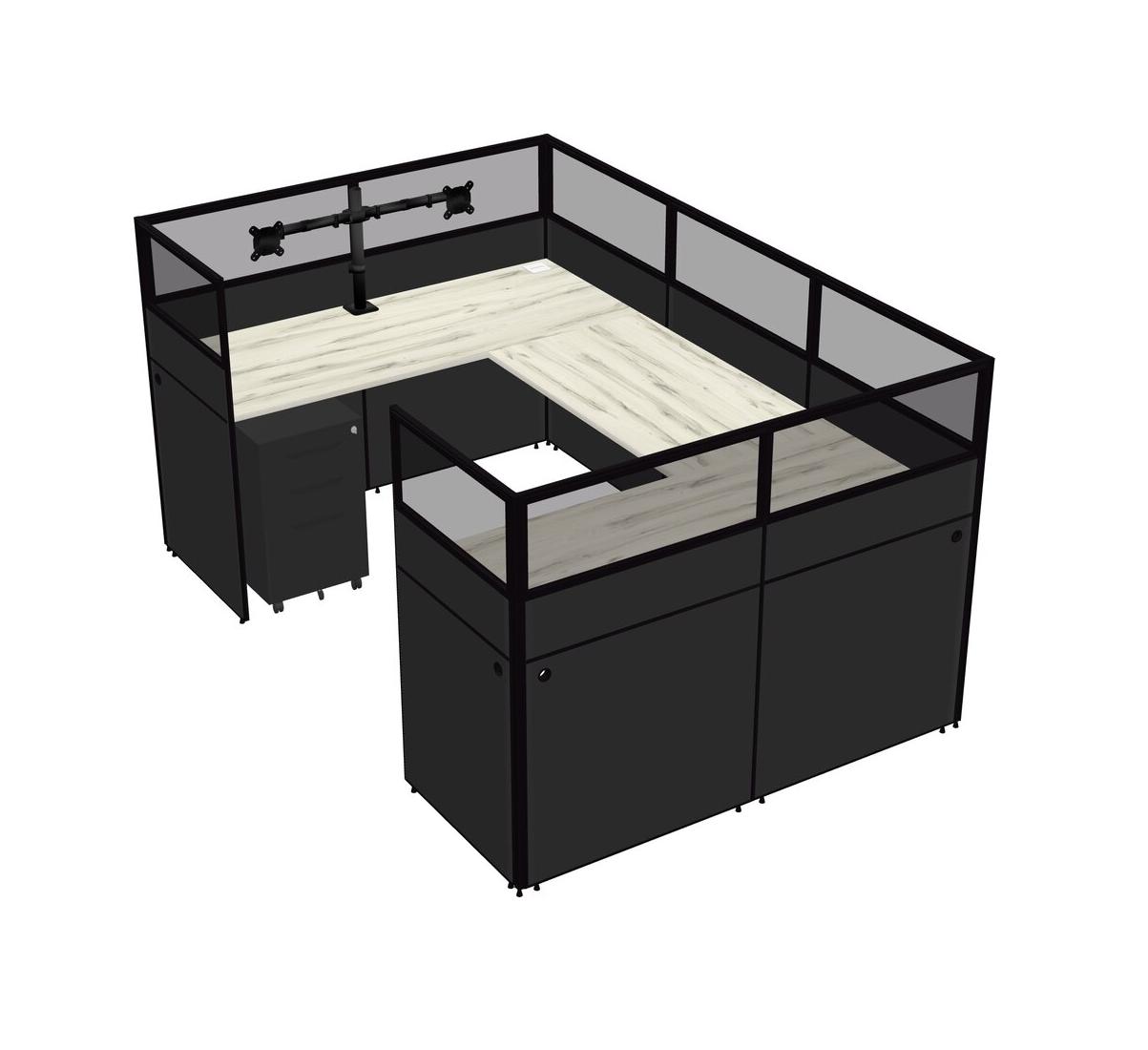 Système De Panneaux En U Heinne Holz Pour 1 Personne + Bras D'écran (bras Doubles) + Tiroirs Mobiles En Métal Pour 1 Utilisateur(s)