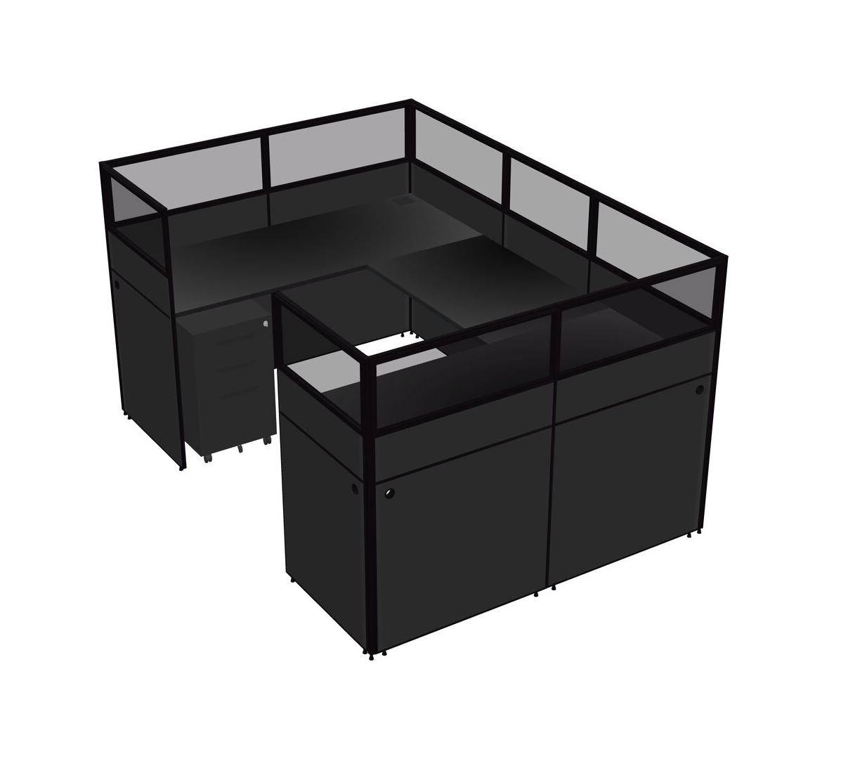 Système De Panneaux En U Noir Pour 1 Personne + Tiroirs Mobiles En Métal Pour 1 Utilisateur(s)