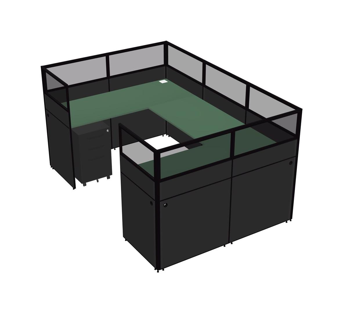 Système De Panneaux Verts En U Pour 1 Personne + Tiroirs Mobiles En Métal Pour 1 Utilisateur(s)