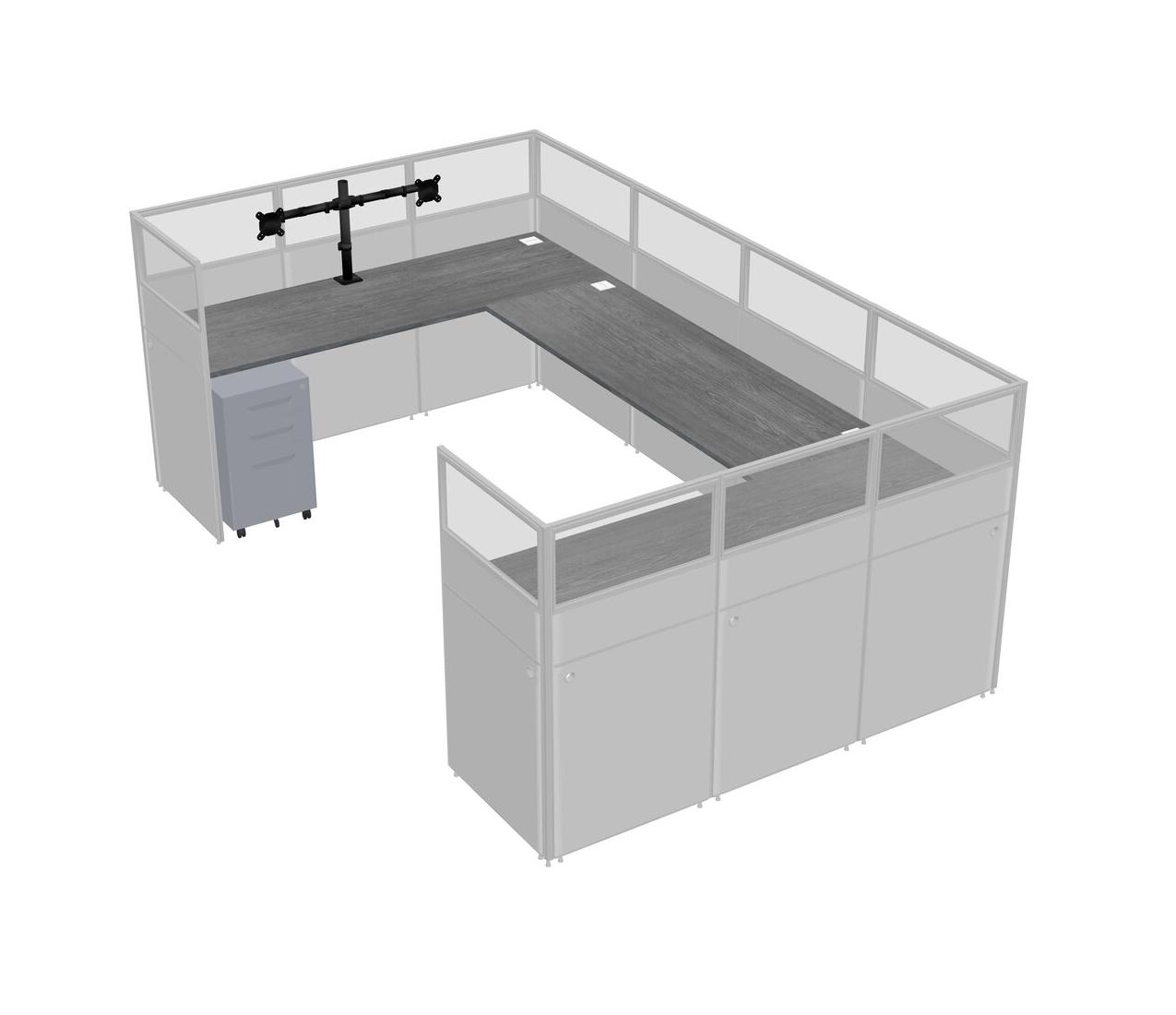 Système De Panneaux En U Gris Pour 1 Personne + Bras D'écran (bras Doubles) + Tiroirs Mobiles En Métal Pour 1 Utilisateur(s)
