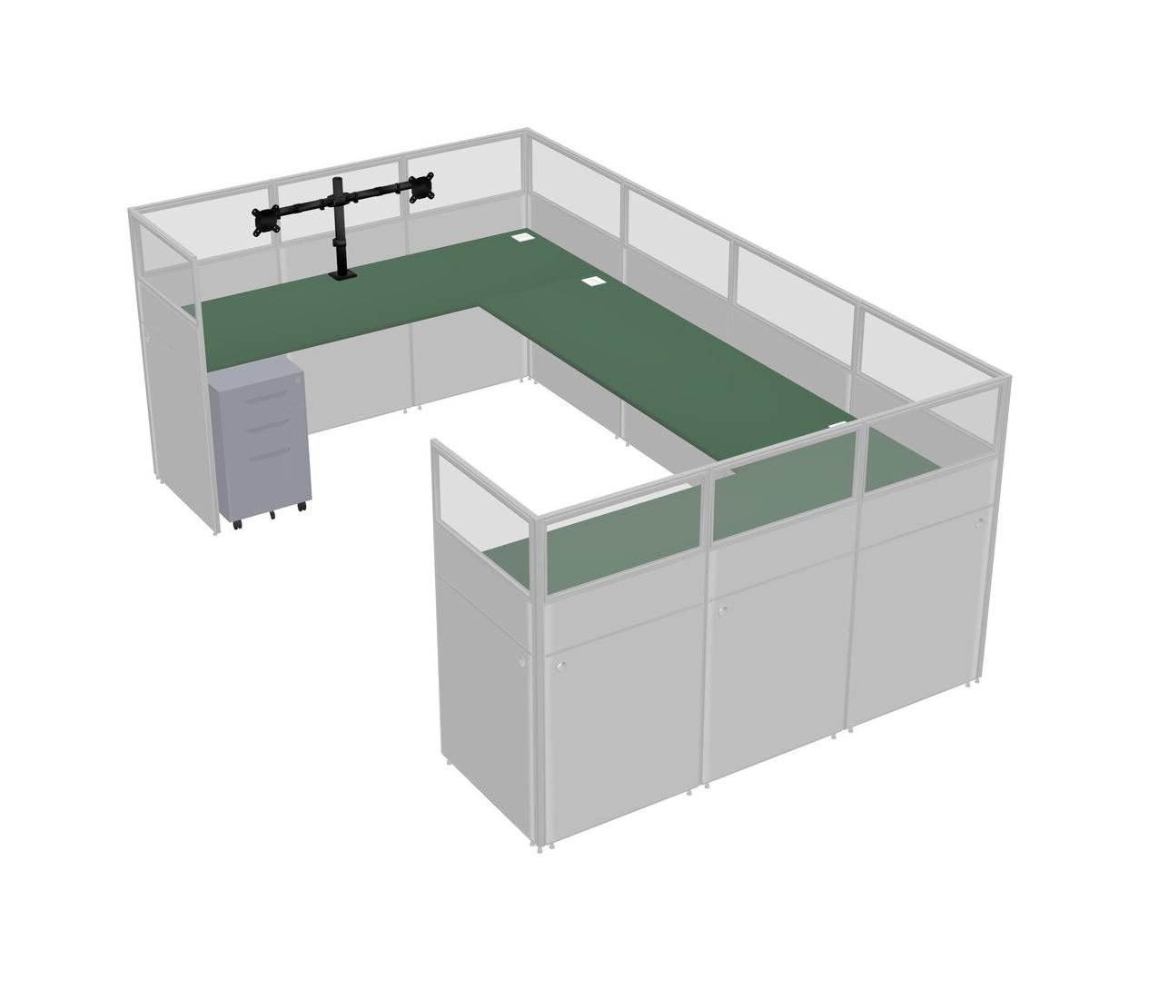 Système De Panneaux Verts En U Pour 1 Personne + Bras D'écran (bras Doubles) + Tiroirs Mobiles En Métal Pour 1 Utilisateur(s)