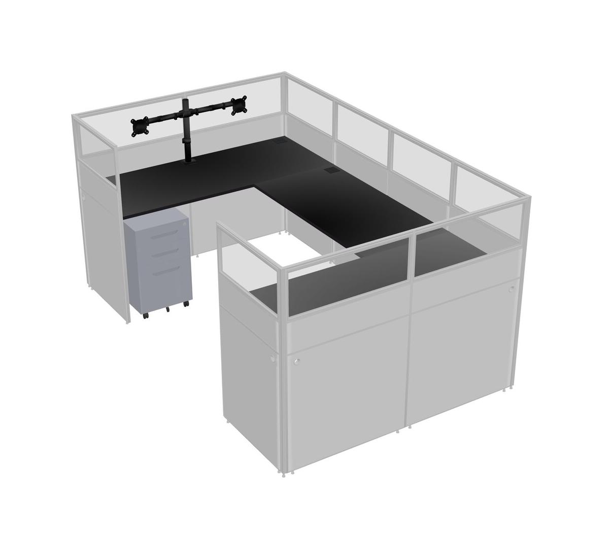 Système De Panneaux En U Noir Pour 1 Personne + Bras D'écran (bras Doubles) + Tiroirs Mobiles En Métal Pour 1 Utilisateur(s)