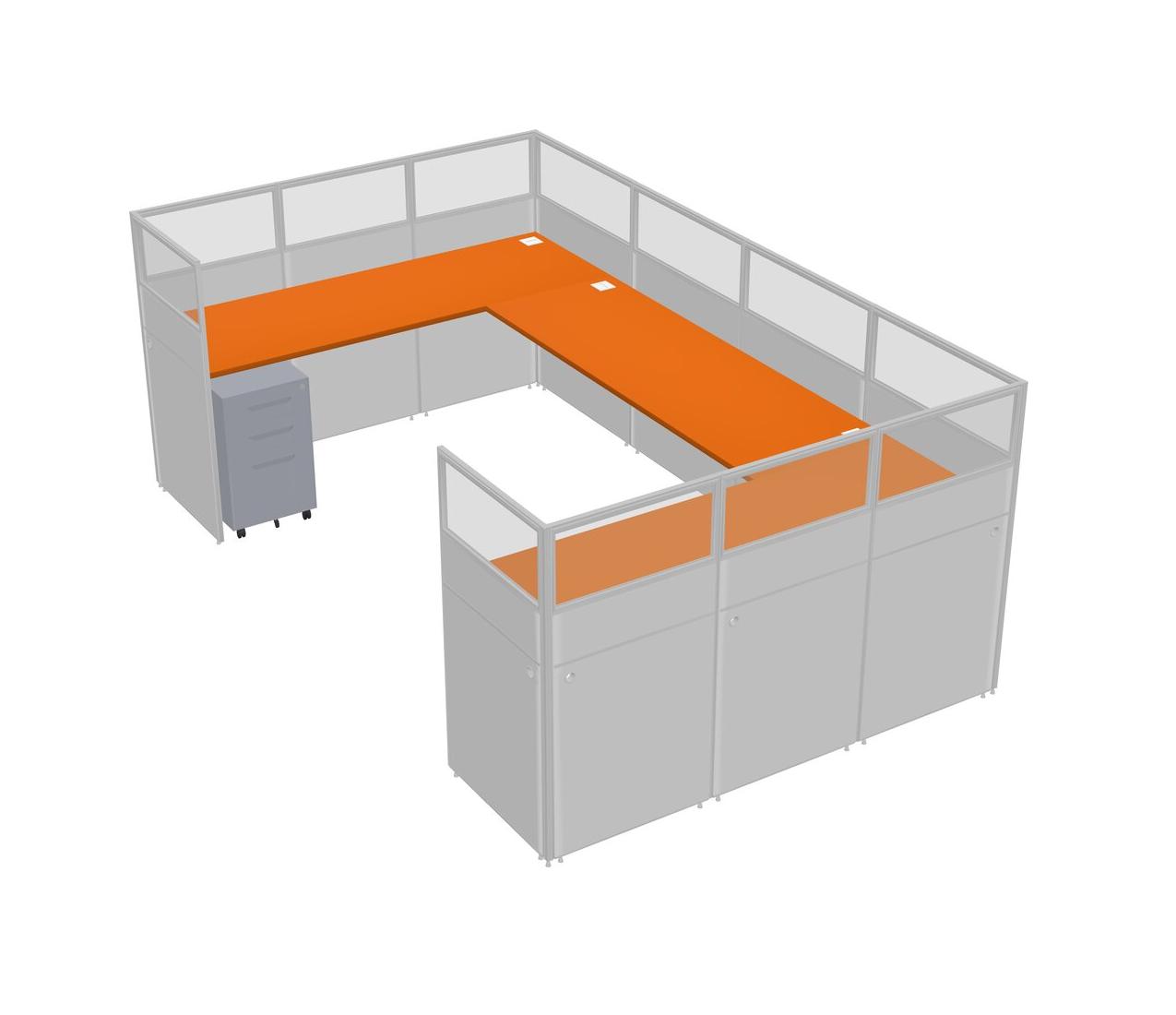 Système De Panneaux En U Orange Pour 1 Personne + Tiroirs Mobiles En Métal Pour 1 Utilisateur(s)