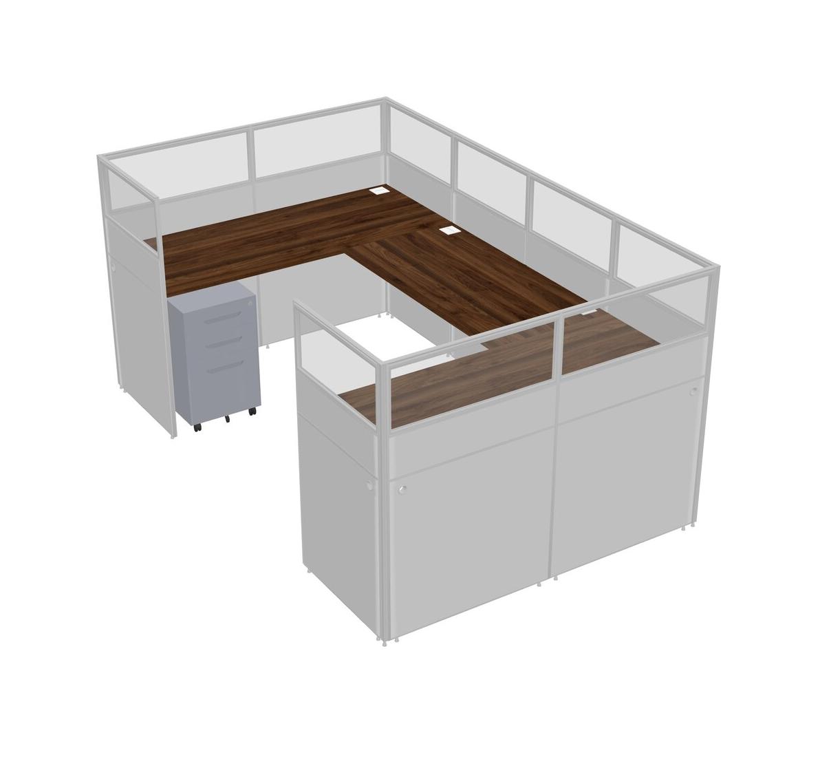 Système De Panneaux En U En Noyer Columbia Pour 1 Personne + Tiroirs Mobiles En Métal Pour 1 Utilisateur(s)
