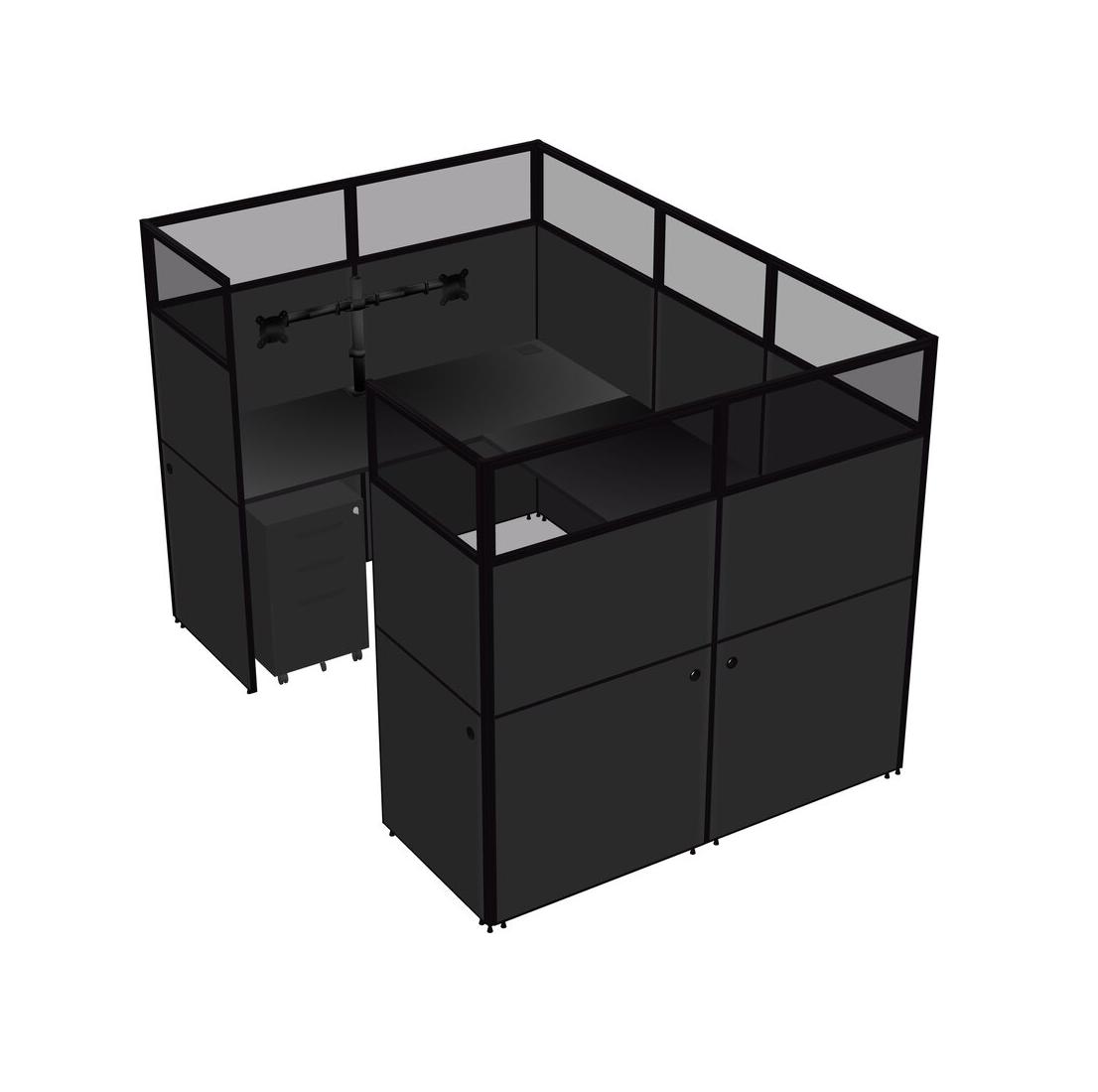 Système De Panneaux En U Noir Pour 1 Personne + Bras D'écran (bras Doubles) + Tiroirs Mobiles En Métal Pour 1 Utilisateur(s)