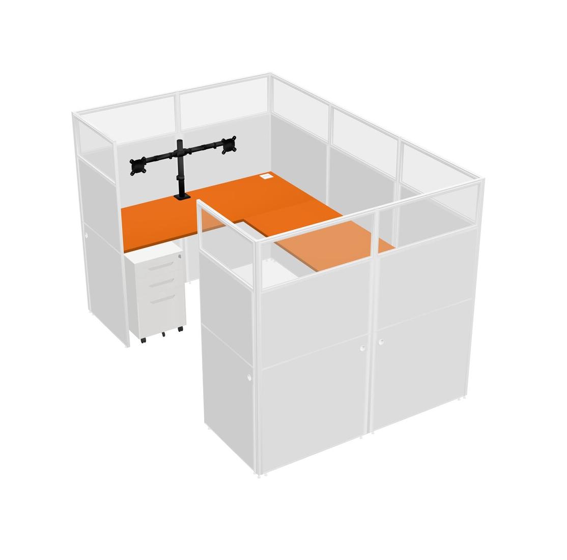 Système De Panneau En U Orange Pour 1 Personne + Bras D'écran (bras Doubles) + Tiroirs Mobiles En Métal Pour 1 Utilisateur(s)