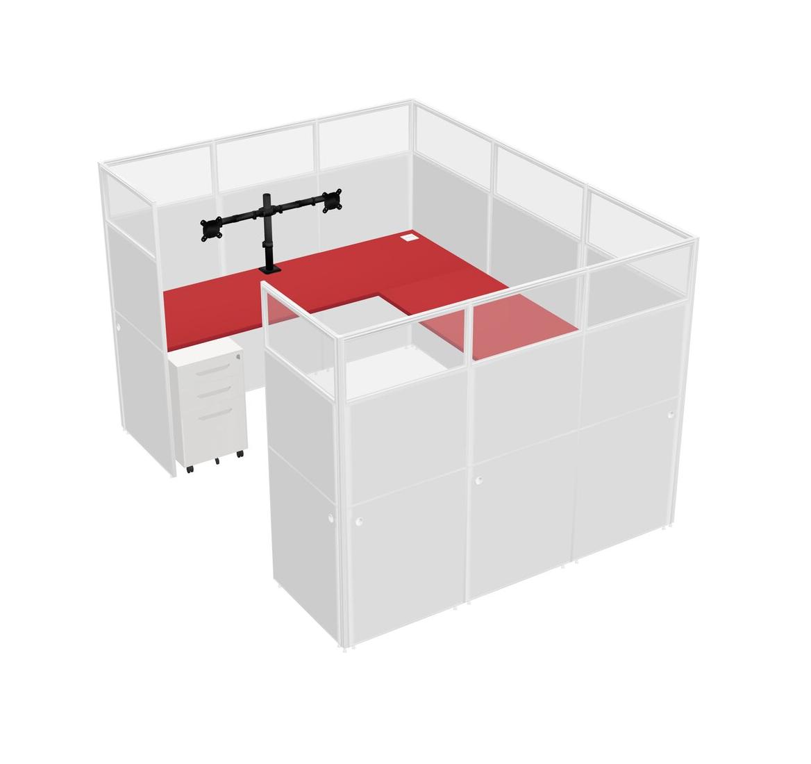Système De Panneau En U Prism Red Pour 1 Personne + Bras D'écran (bras Doubles) + Tiroirs Mobiles En Métal Pour 1 Utilisateur(s)