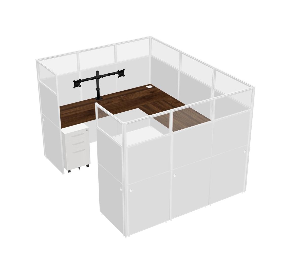 Système De Panneaux En U En Noyer Columbia Pour 1 Personne + Bras D'écran (bras Doubles) + Tiroirs Mobiles En Métal Pour 1 Utilisateur(s)