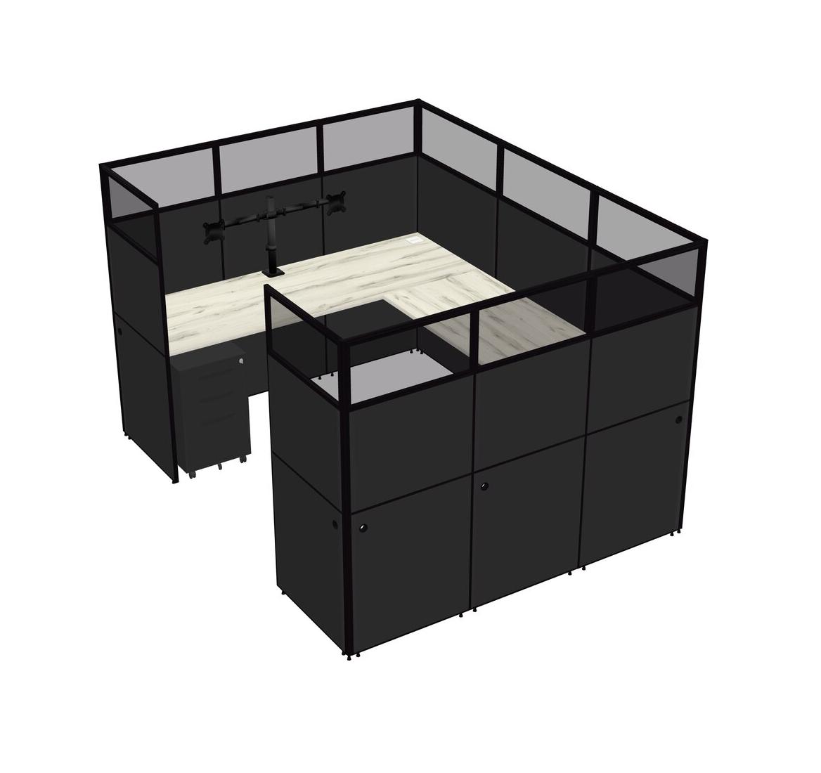 Système De Panneaux En U Heinne Holz Pour 1 Personne + Bras D'écran (bras Doubles) + Tiroirs Mobiles En Métal Pour 1 Utilisateur(s)