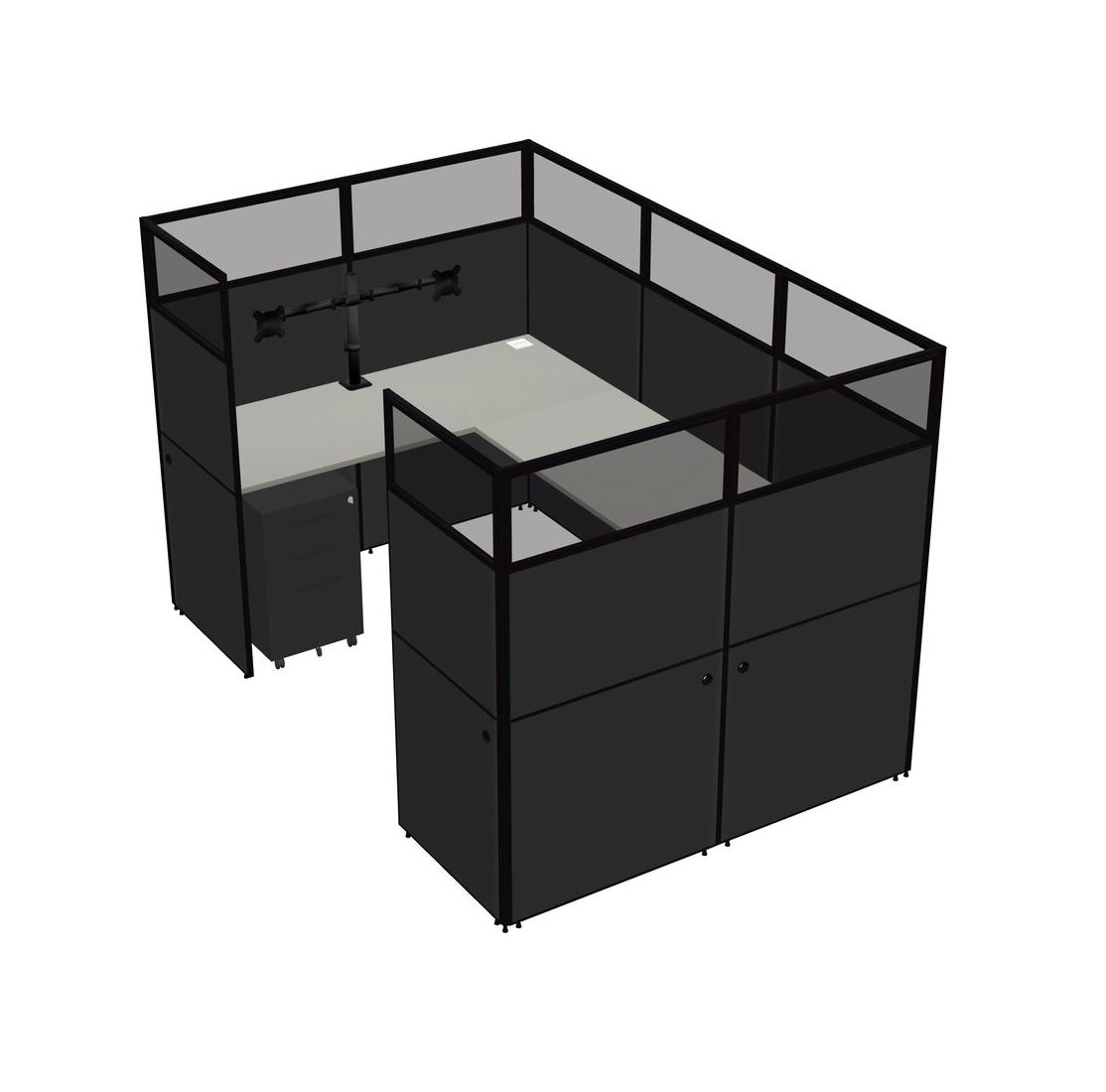 Système De Panneaux En U Grey Shadows Pour 1 Personne + Bras D'écran (bras Doubles) + Tiroirs Mobiles En Métal Pour 1 Utilisateur(s)
