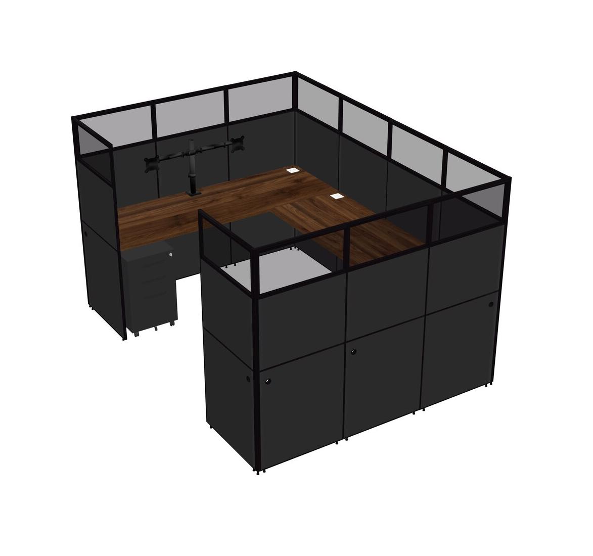 Système De Panneaux En U En Noyer Columbia Pour 1 Personne + Bras D'écran (bras Doubles) + Tiroirs Mobiles En Métal Pour 1 Utilisateur(s)