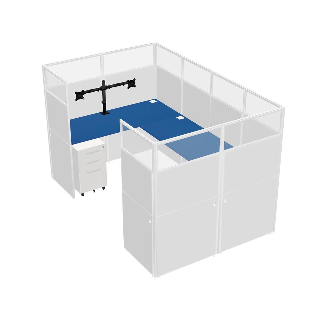 Système De Panneau En U Prism Blue Pour 1 Personne + Bras D'écran (bras Doubles) + Tiroirs Mobiles En Métal Pour 1 Utilisateur(s)
