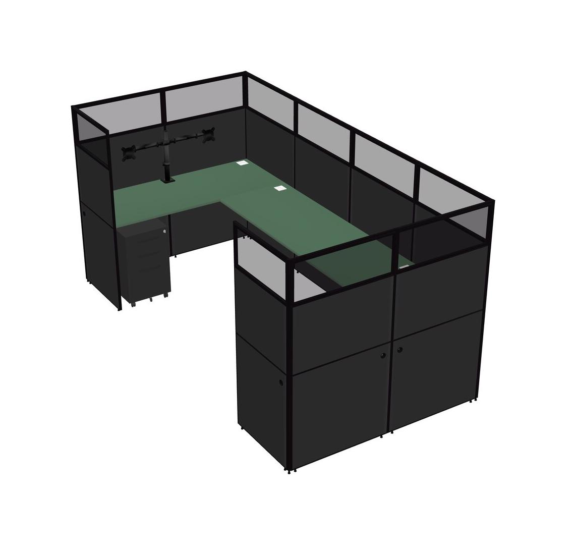 Système De Panneaux Verts En U Pour 1 Personne + Bras D'écran (bras Doubles) + Tiroirs Mobiles En Métal Pour 1 Utilisateur(s)
