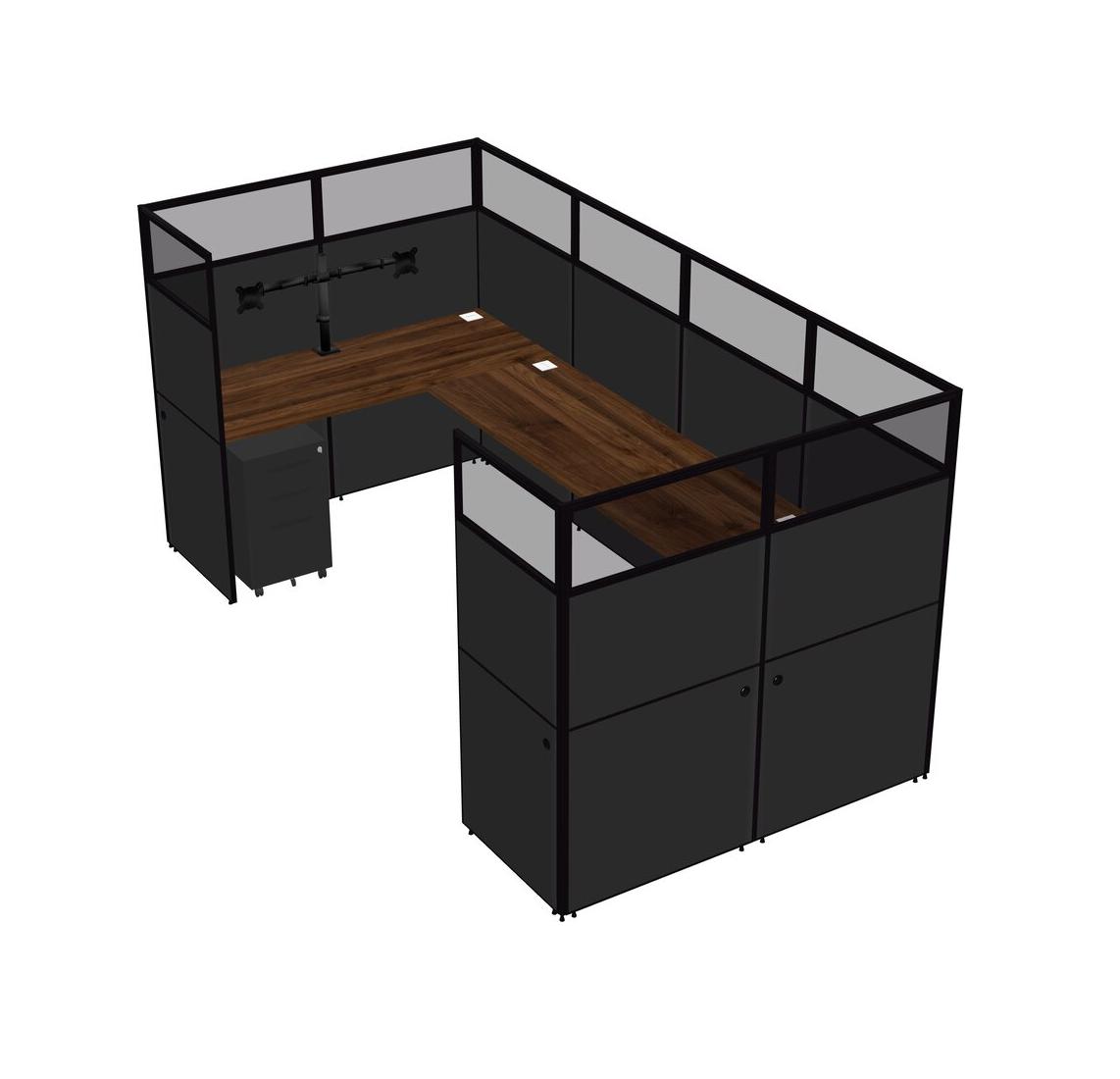 Système De Panneaux En U En Noyer Columbia Pour 1 Personne + Bras D'écran (bras Doubles) + Tiroirs Mobiles En Métal Pour 1 Utilisateur(s)