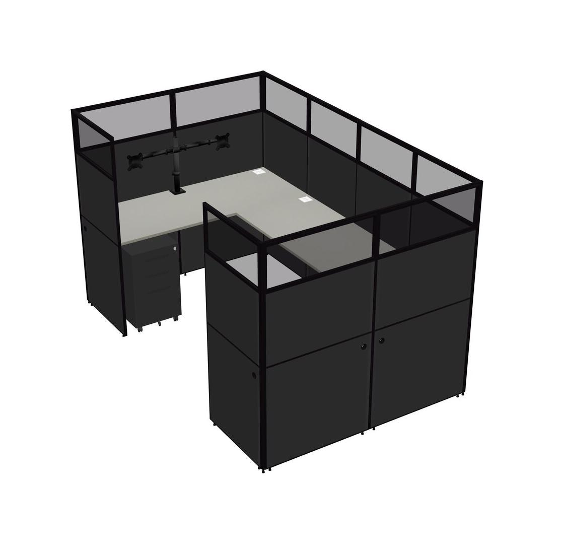 Système De Panneaux En U Grey Shadows Pour 1 Personne + Bras D'écran (bras Doubles) + Tiroirs Mobiles En Métal Pour 1 Utilisateur(s)