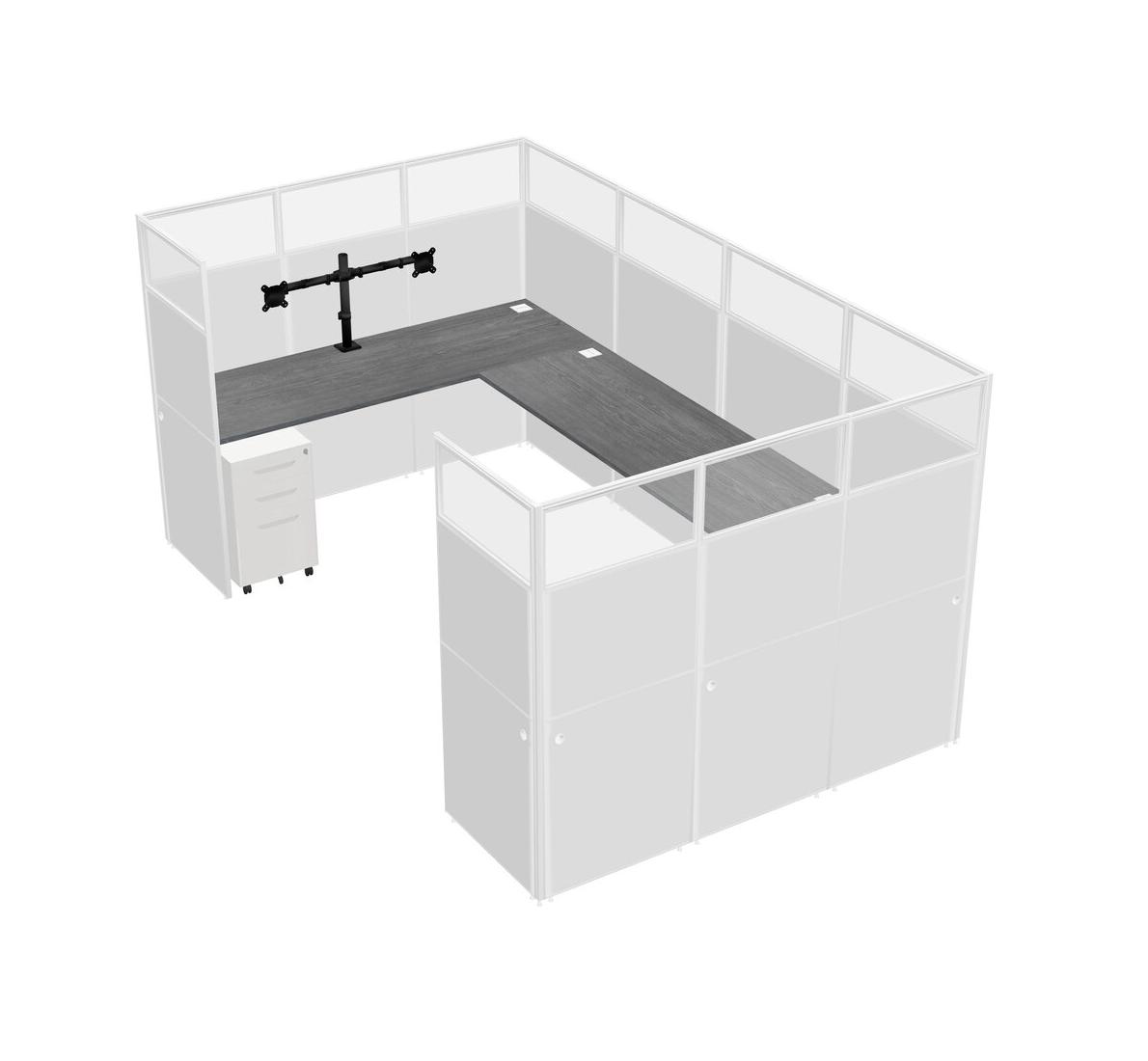 Système De Panneaux En U Gris Pour 1 Personne + Bras D'écran (bras Doubles) + Tiroirs Mobiles En Métal Pour 1 Utilisateur(s)