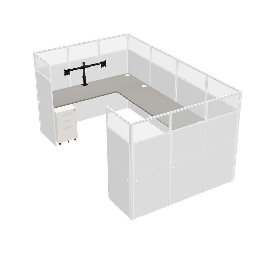 Système De Panneaux En U Grey Shadows Pour 1 Personne + Bras D'écran (bras Doubles) + Tiroirs Mobiles En Métal Pour 1 Utilisateur(s)