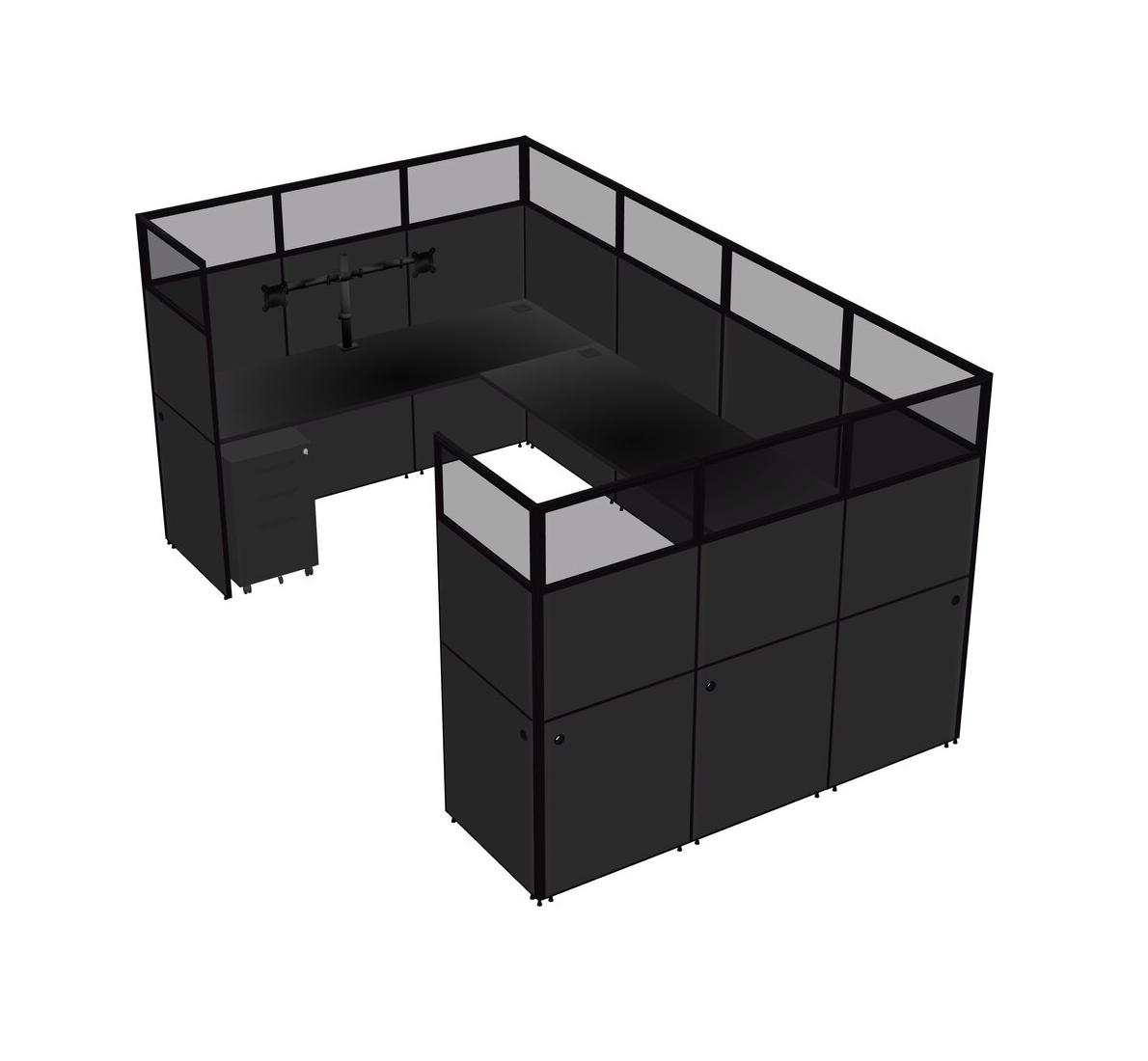 Système De Panneaux En U Noir Pour 1 Personne + Bras D'écran (bras Doubles) + Tiroirs Mobiles En Métal Pour 1 Utilisateur(s)