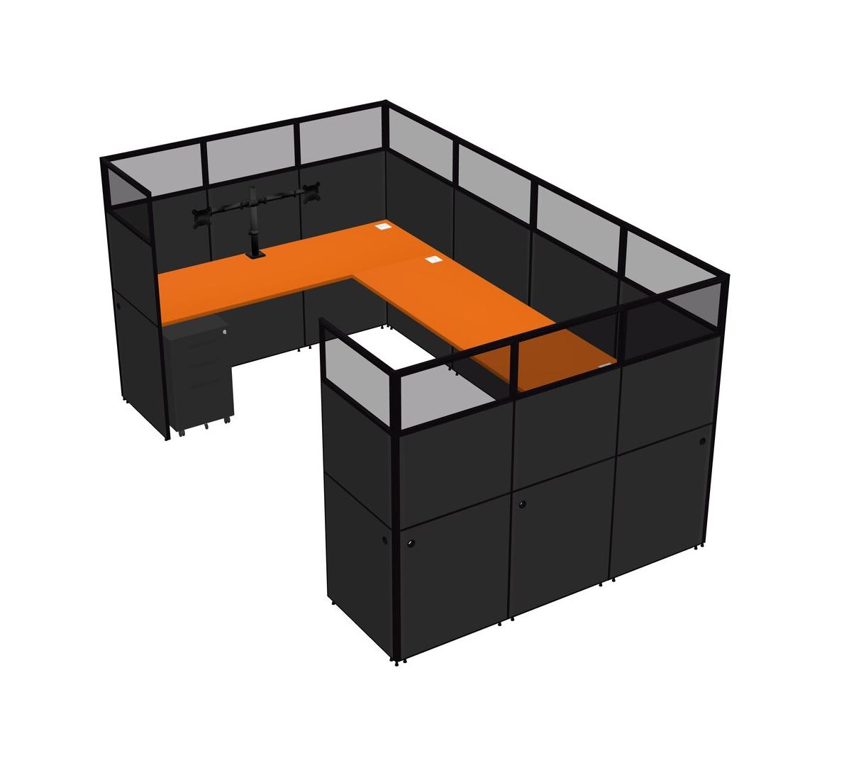 Système De Panneau En U Orange Pour 1 Personne + Bras D'écran (bras Doubles) + Tiroirs Mobiles En Métal Pour 1 Utilisateur(s)