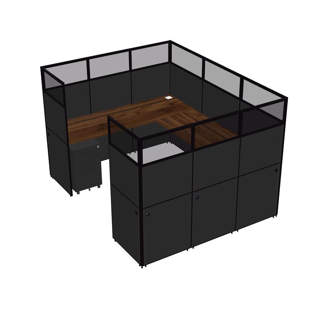 Système De Panneaux En U En Noyer Columbia Pour 1 Personne + Tiroirs Mobiles En Métal Pour 1 Utilisateur(s)