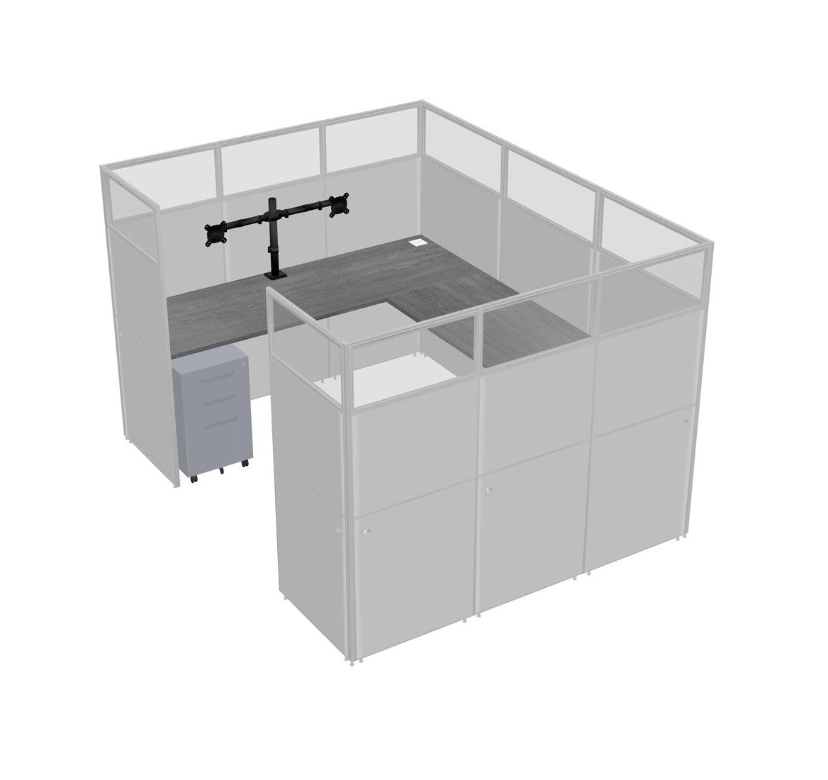 Système De Panneaux En U Gris Pour 1 Personne + Bras D'écran (bras Doubles) + Tiroirs Mobiles En Métal Pour 1 Utilisateur(s)