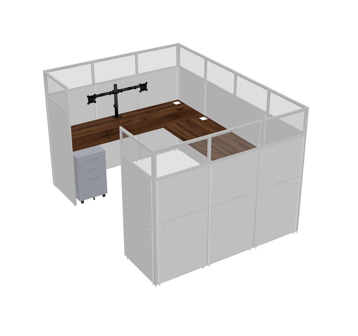 Système De Panneaux En U En Noyer Columbia Pour 1 Personne + Bras D'écran (bras Doubles) + Tiroirs Mobiles En Métal Pour 1 Utilisateur(s)