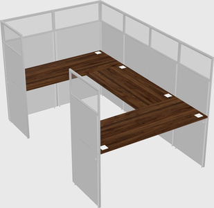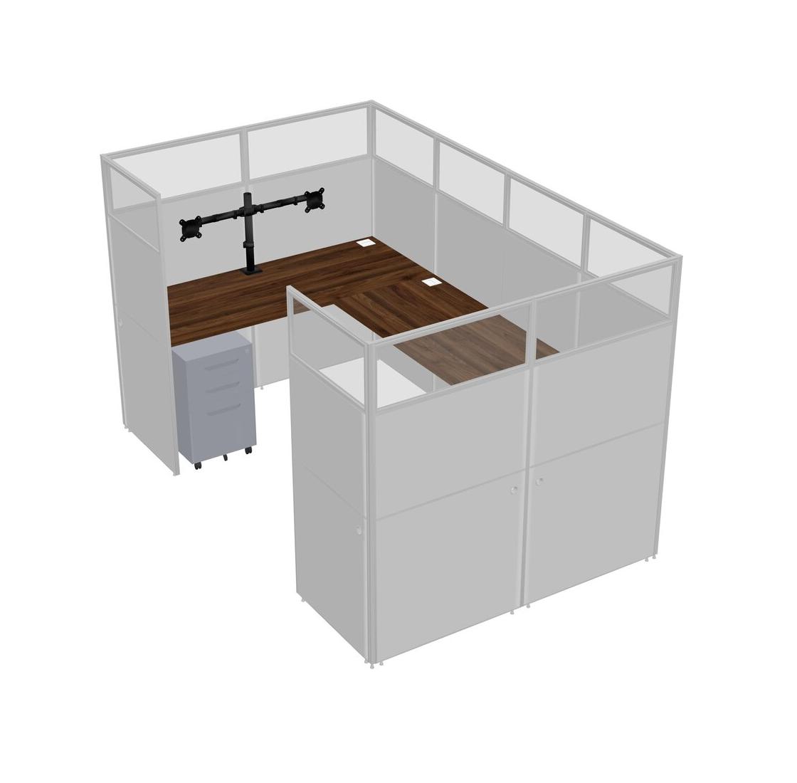 Système De Panneaux En U En Noyer Columbia Pour 1 Personne + Bras D'écran (bras Doubles) + Tiroirs Mobiles En Métal Pour 1 Utilisateur(s)