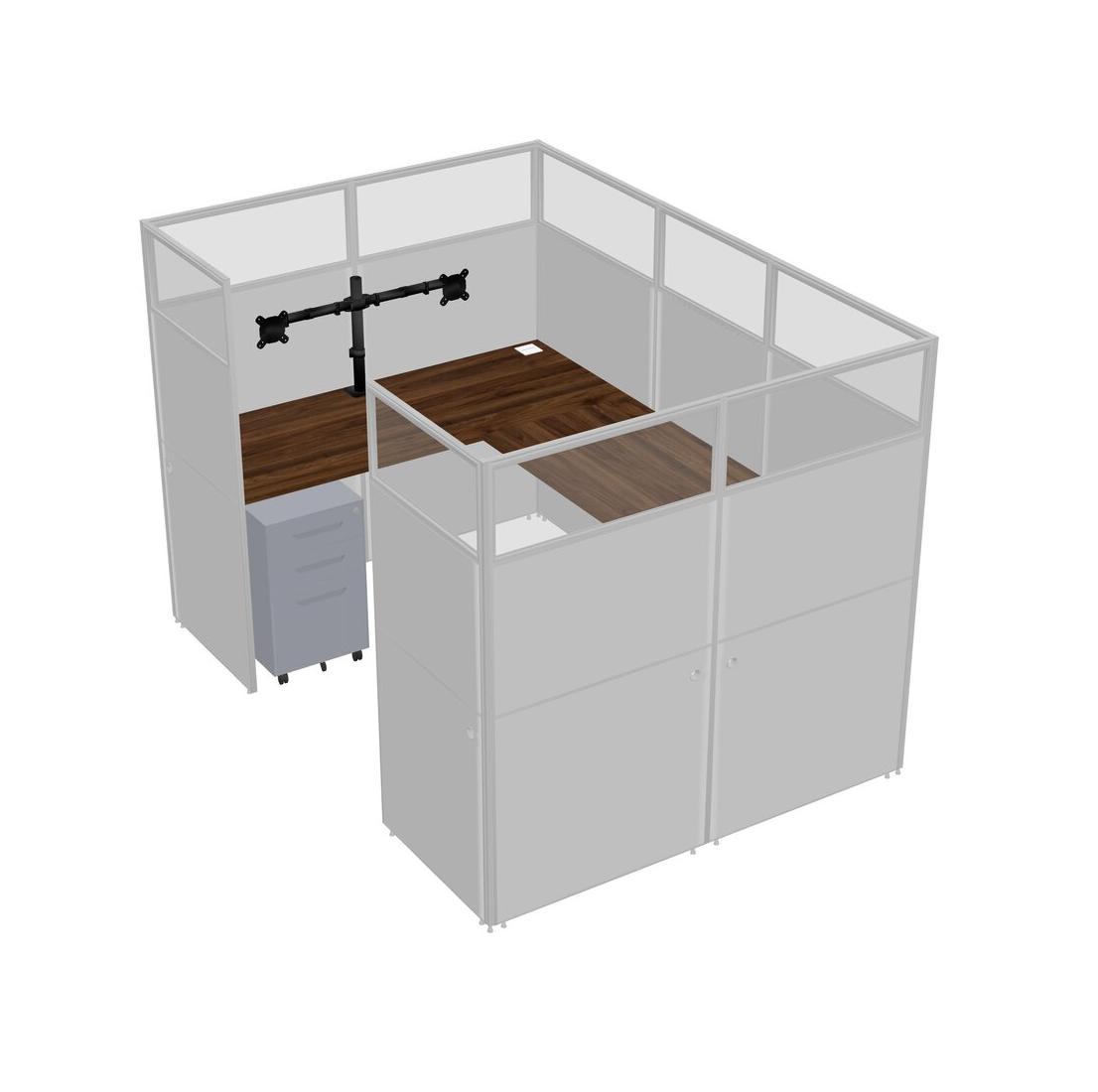 Système De Panneaux En U En Noyer Columbia Pour 1 Personne + Bras D'écran (bras Doubles) + Tiroirs Mobiles En Métal Pour 1 Utilisateur(s)