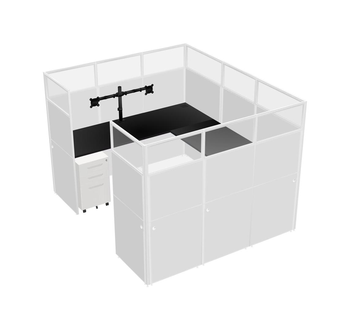 Système De Panneaux En U Noir Pour 1 Personne + Bras D'écran (bras Doubles) + Tiroirs Mobiles En Métal Pour 1 Utilisateur(s)