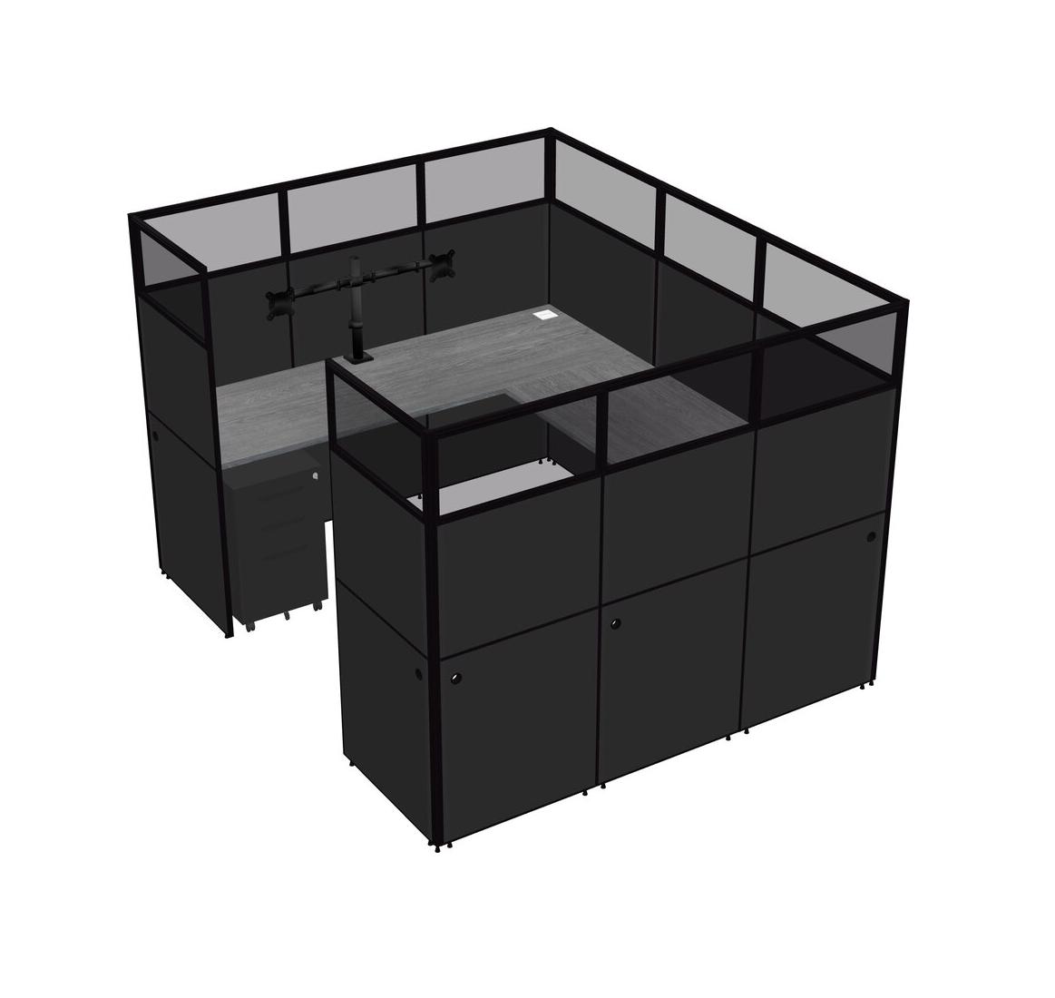 Système De Panneaux En U Gris Pour 1 Personne + Bras D'écran (bras Doubles) + Tiroirs Mobiles En Métal Pour 1 Utilisateur(s)
