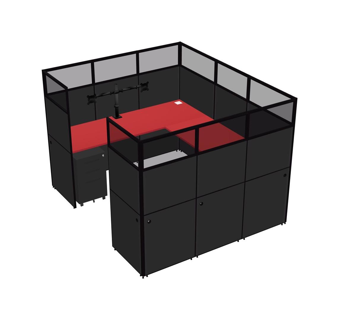 Système De Panneau En U Prism Red Pour 1 Personne + Bras D'écran (bras Doubles) + Tiroirs Mobiles En Métal Pour 1 Utilisateur(s)