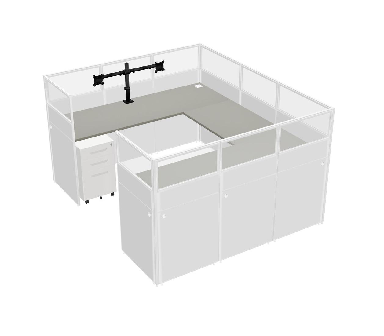 Système De Panneaux En U Grey Shadows Pour 1 Personne + Bras D'écran (bras Doubles) + Tiroirs Mobiles En Métal Pour 1 Utilisateur(s)
