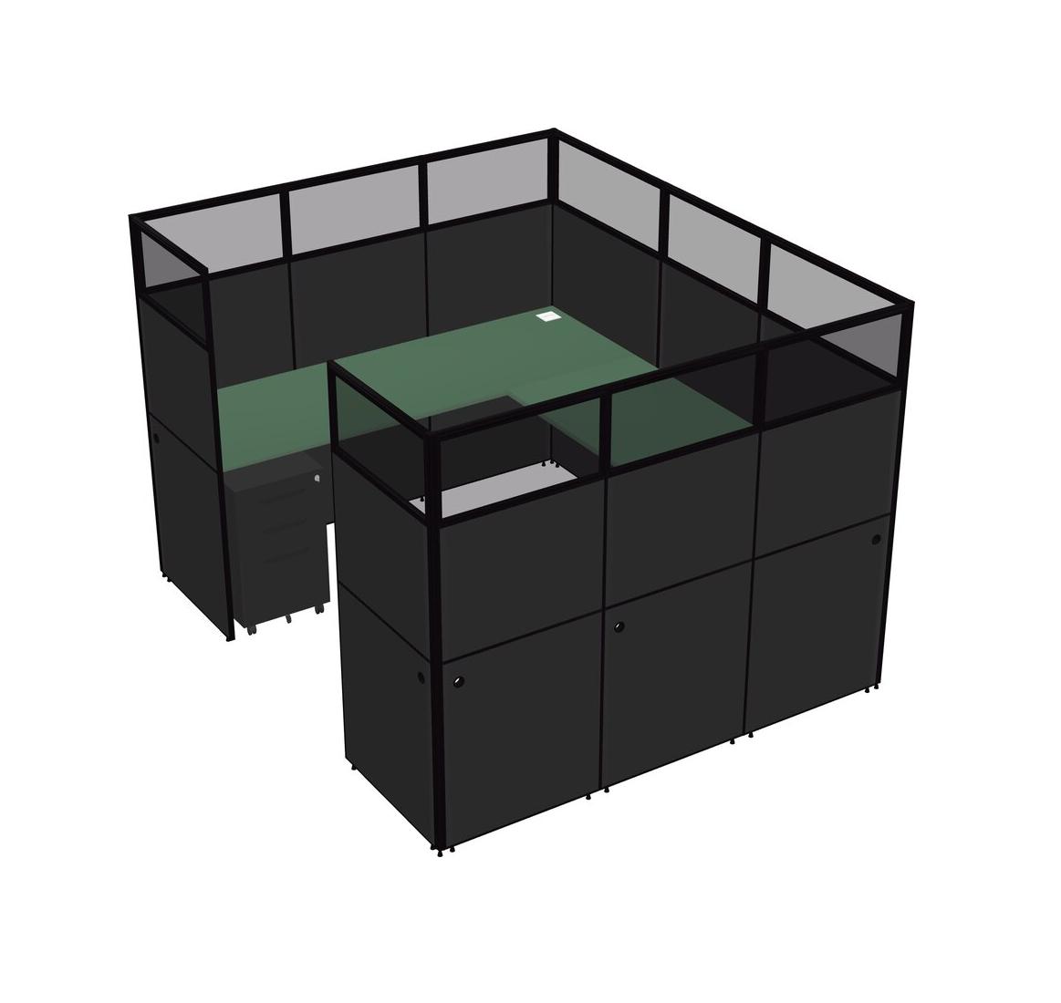 Système De Panneaux Verts En U Pour 1 Personne + Tiroirs Mobiles En Métal Pour 1 Utilisateur(s)