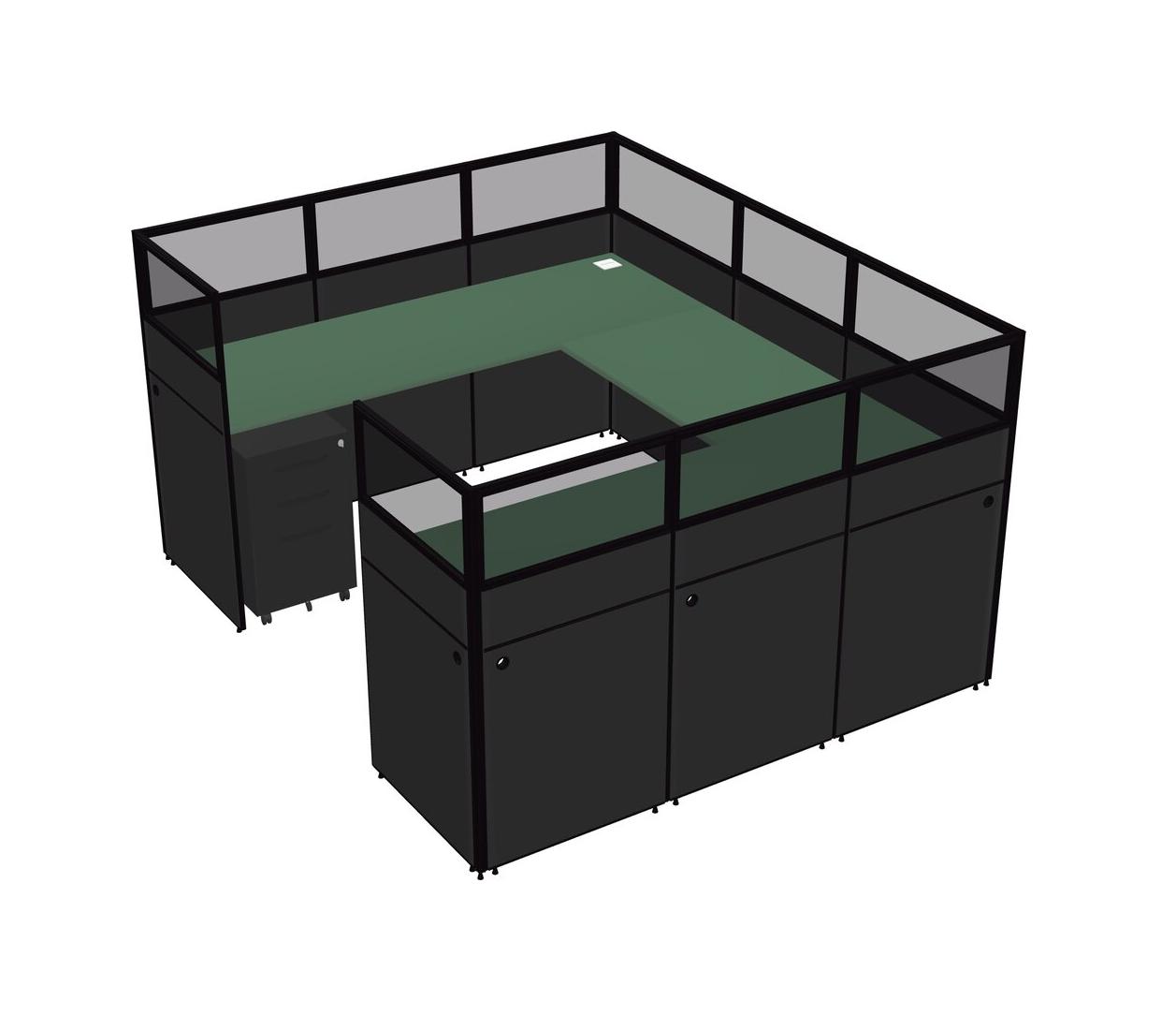 Système De Panneaux Verts En U Pour 1 Personne + Tiroirs Mobiles En Métal Pour 1 Utilisateur(s)